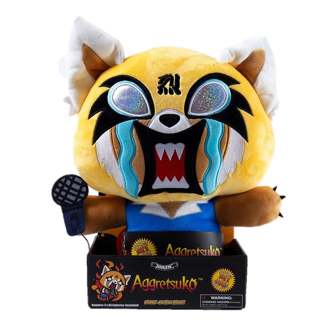Calling all Aggretsuko fans! It’s time to RAGE… karaoke style with this new Aggretsuko Rage HugMe Shake Action Vibrating Plush by Kidrobot x Sanrio!Β Everyoneβs favorite introverted red panda whoβs just trying to get through the work day is available from Kidrobot in vibrating plush! Frustrated with her thankless office job, Retsuko copes with her daily struggles by belting out death metal karaoke after work when all she might need is a really good hug! When you hug this plushie or clap for her, she rages with vibrating action. Standing at 16-inches tall, your favorite red panda Aggretsuko is ready to snuggle up with you at the end of a hard day and relax!