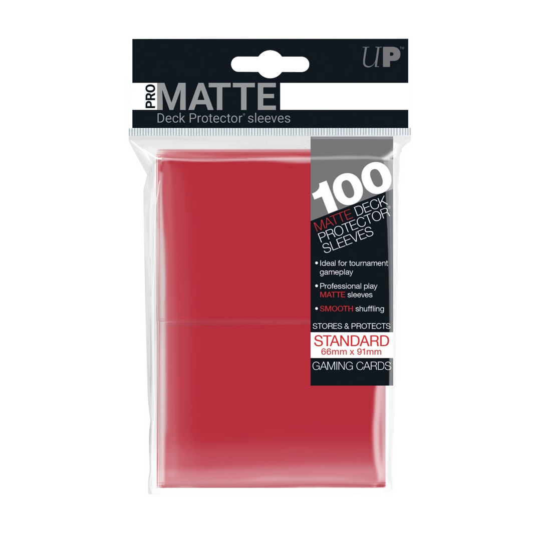 Solid color Deck Protectors with Ultra PRO’s hologram quality seal. The clear side uses non-glare matte material for a softer feel and smoother shuffle. Stores and protects standard-sized cards. 100-count pack. All Ultra PRO Deck Protectors are archival-safe and acid-free.