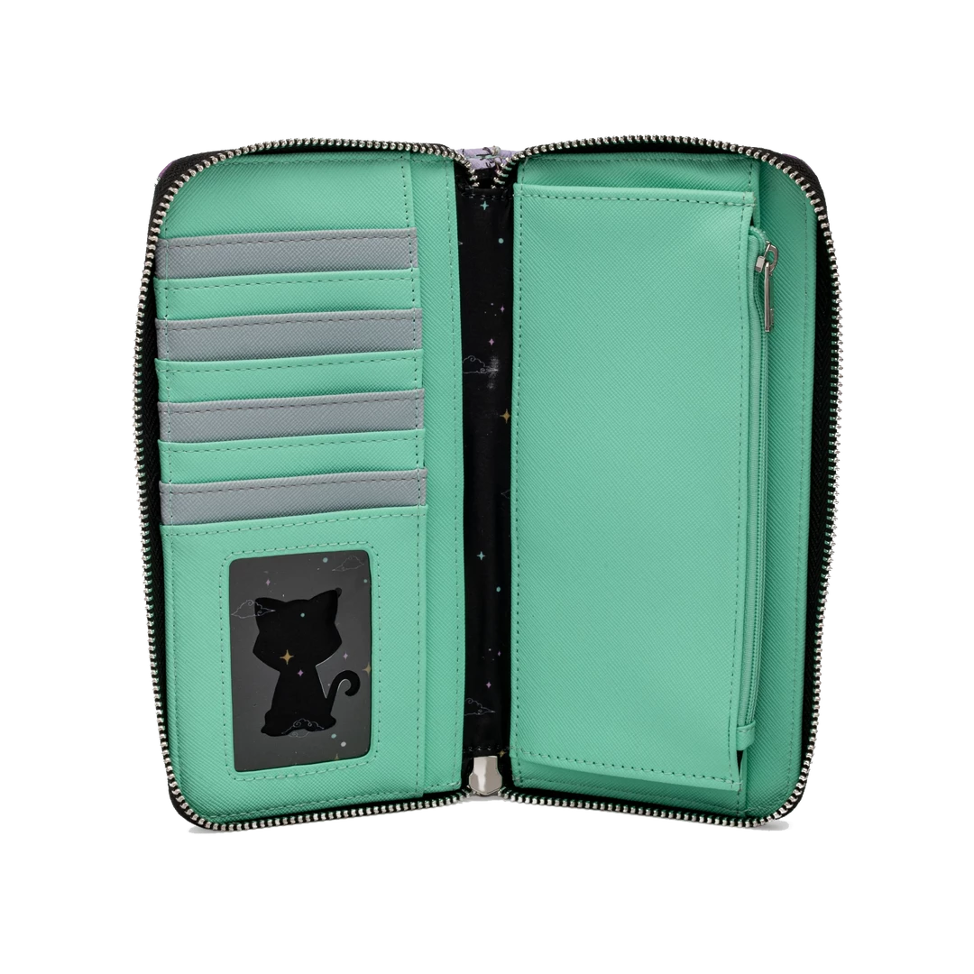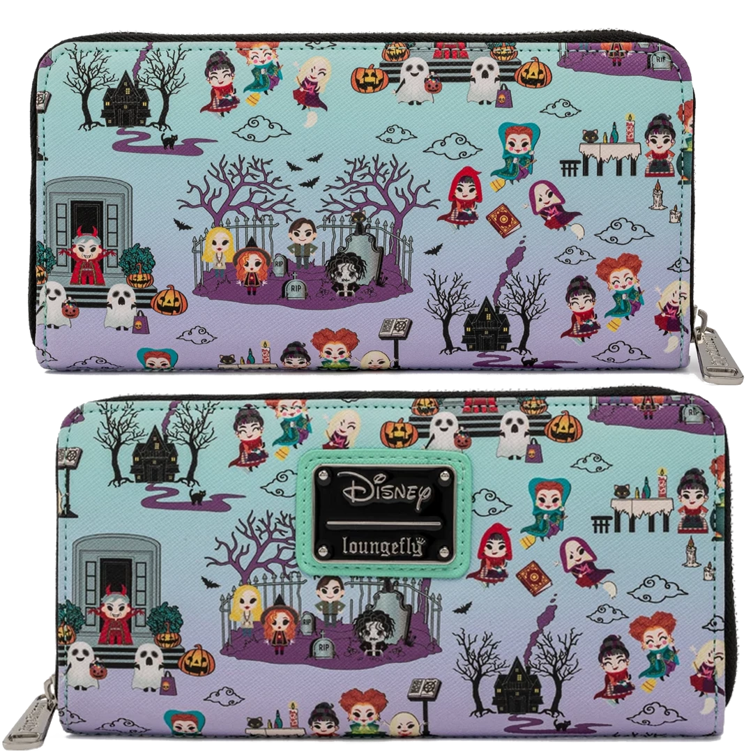 Show off yourΒ DisneyΒ fandom with this Hocus Pocus AOP Zip around Wallet! It is made of faux leather and features matching themed lining, glitter applique, and deboss printed details.