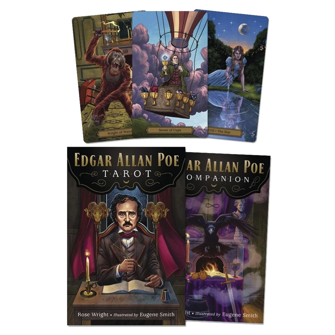 Whether you’re brand new to tarot or are an experienced reader,Β The Edgar Allan Poe TarotΒ will be your guide on your spiritual journey. Each card has two sections:Β Into the MaelstrΓΆm, which provides divinatory meaning, andΒ Tell-Tale Heart, which explores its connection to one of Poe’s works. This unique format makes every card a doorway to discovery.