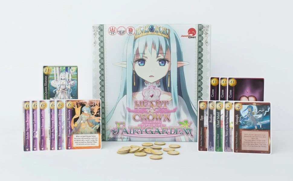 Heart of Crown: Fairy Garden is a standalone expansion for Heart of Crown that contains all the cards from the base game to play on its own, and may be integrated with the cards of the base game and the other Heart of Crown expansions.