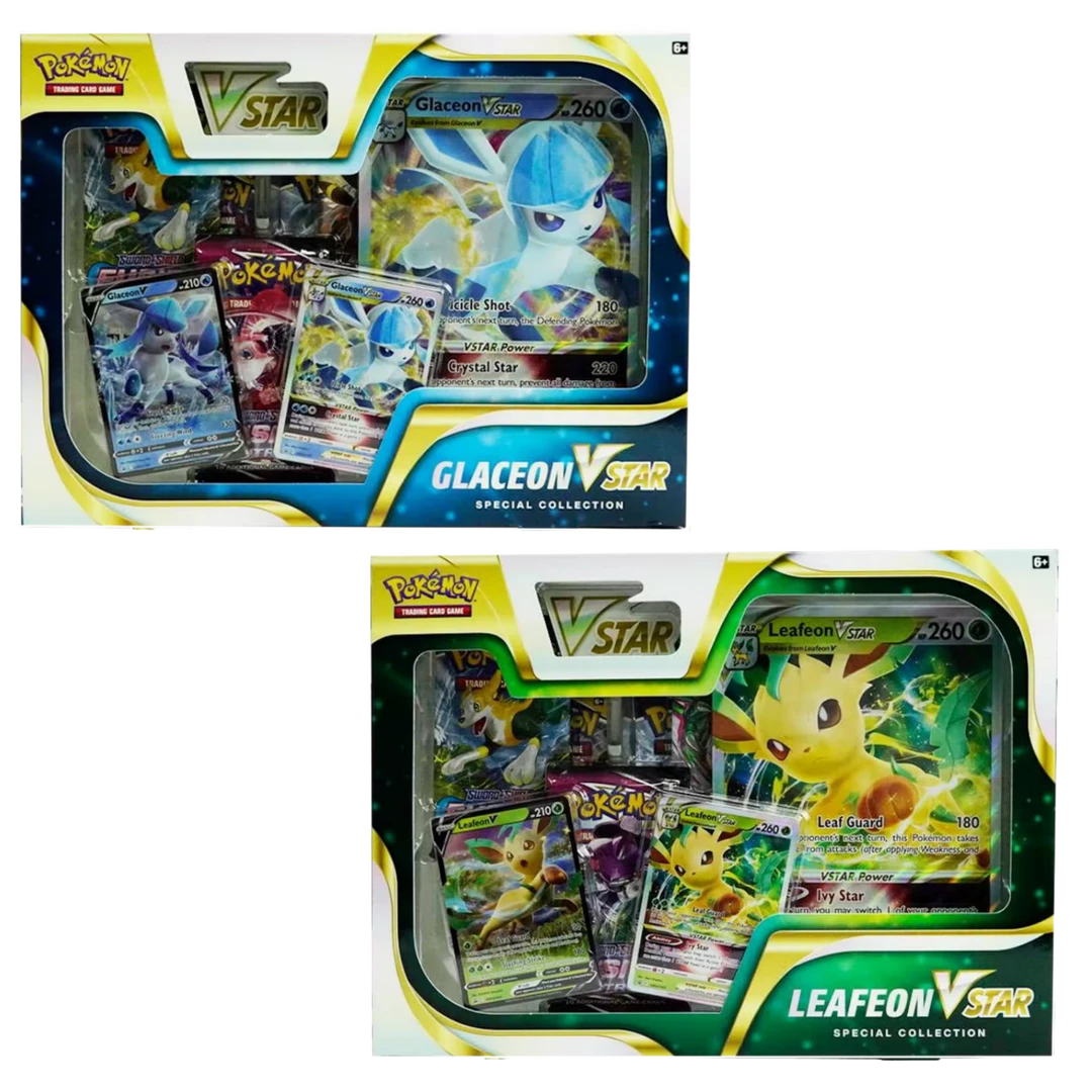 The Pokémon TCG: Leafeon VSTAR and Glaceon VSTAR Special Collections include: