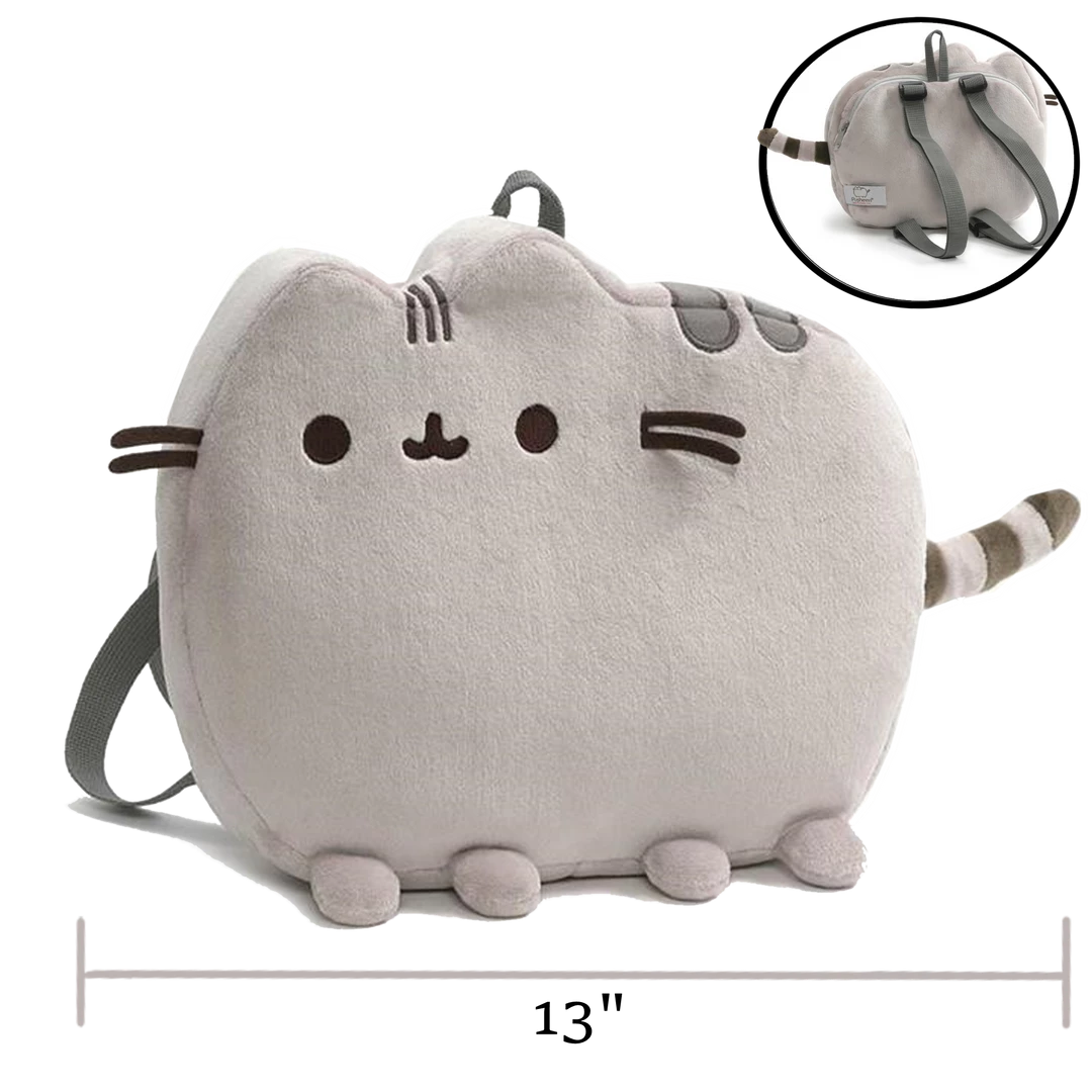 - CAT + BACKPACK: This 13` Pusheen plush backpack is the perfect size to pack up the necessities (snacks) to make any adventure a little more fun. Features secure straps & a durable zipper.