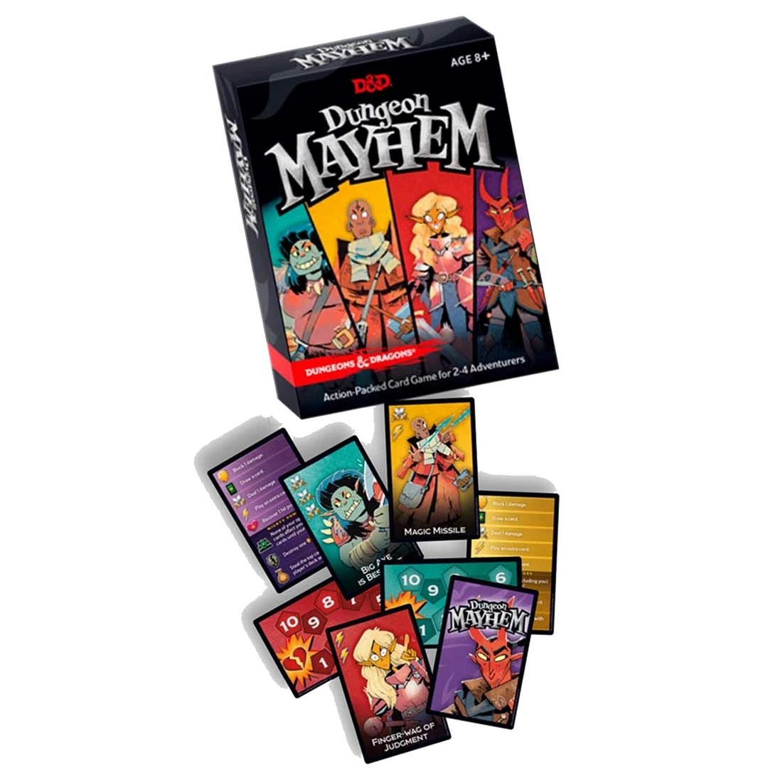 In this action-packed, Dungeons & Dragons card game, you win by being the last adventurer standing. Play as one of four brave, quirky characters – Barbarian, Paladin, Rogue, or Wizard – battling it out in a dungeon full of treasure! With Magic Missiles flinging, dual daggers slinging, and spiked shields dinging, it’s up to you to prove your adventurer has the guts to bring home the glory!